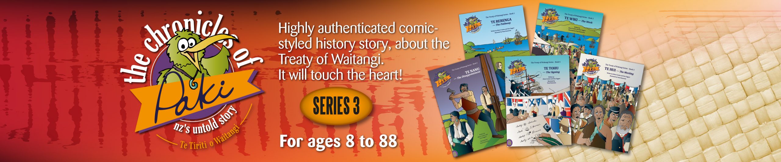 I consider this wonderful series to be a taonga – gift. The Chronicles of Paki make for exciting reading. Each story should capture the imagination and interest of children in every generation. I am very pleased to endorse The Chronicles of Paki Treaty of Waitangi Series. I thoroughly enjoyed reading it. It is an excellent piece of work and I am proud to be associated with its publication. Kia ora!